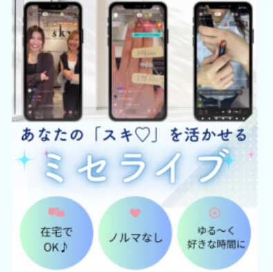 ミセライブは、企業の商品やサービスをライブ配信を通じて紹介する「PRライバー」として活動し、その対価として報酬を得る副業案件です。広告では「在宅で簡単に収入が得られる」「スマホ一つで始められる」といった利便性を強調し、特に副業未経験者や時間を有効活用したい層にアピールしています。
