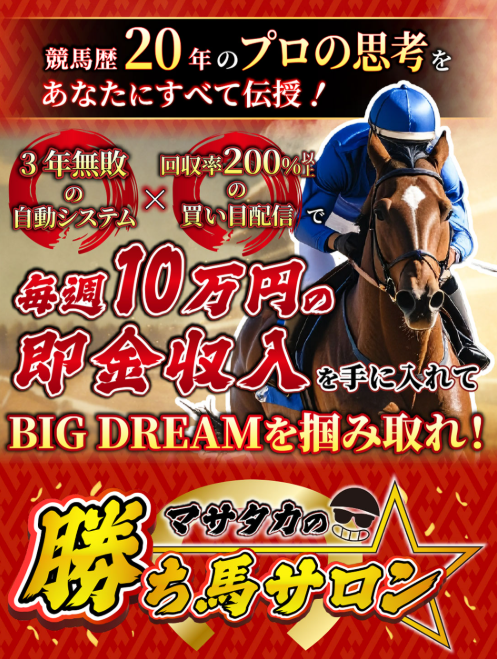 最初に結論を述べます。「マサタカの勝ち馬サロン」は、「競馬で絶対に勝てる情報がある」と誤認させ、最終的に高額な有料予想プランや情報商材を購入させることを目的とした業者の可能性が高いです。
