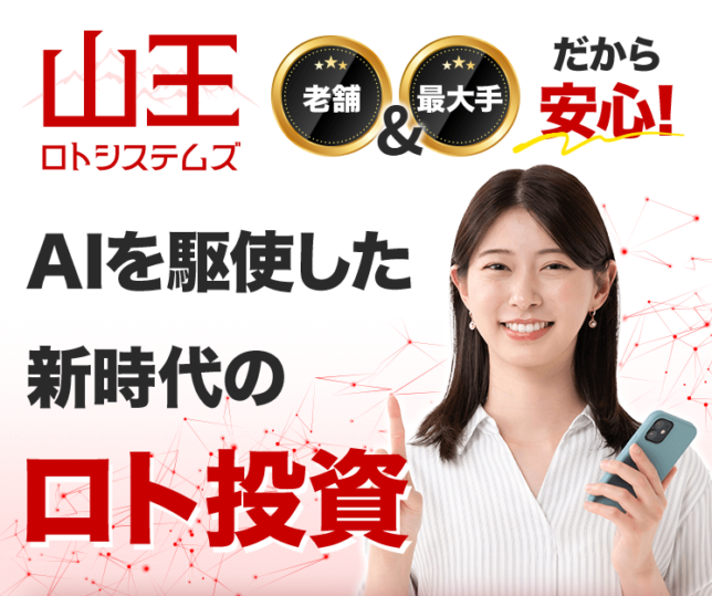 山王ロトシステムズは、ロト7やロト6といった数字選択式宝くじの当選番号を、独自のAIやシステムが予測すると宣伝しているサービスです。「高額当選者の裏ワザ」「予想精度の高さに驚く声が続出」といった、射幸心を煽るフレーズでユーザーを集客しています。