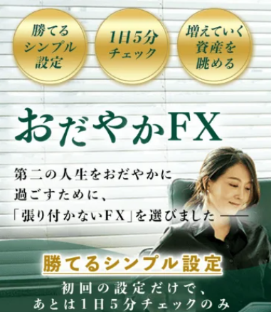 おだやかFXは、スマートフォン一台あれば「おだやかに、かつ着実に資産を増やせる」と主張するFX(外国為替証拠金取引)の自動売買システム(EA)を主軸とした副業案件です。