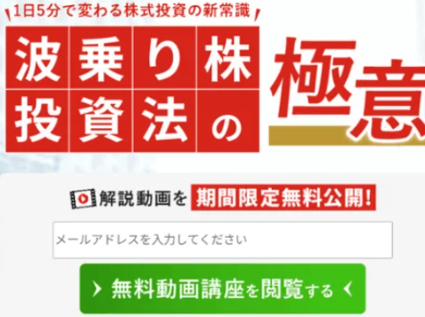 「波乗り株投資法の極意」は、株アカデミー学長・下山敬三氏が提唱する独自の株式投資法で、無料オンライン講義や動画セミナー、書籍「スマホで波乗り株投資法」などを通じて集客されている投資系コンテンツです。