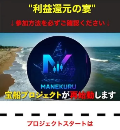宝船プロジェクトは、富崎という人物が案内役となり、FX自動売買システム「マネクル」を用いて資産運用する投資コミュニティとして紹介されています。 プロジェクトの集客は、ニートトレーダー旬と呼ばれるインフルエンサーがYouTubeやX上で発信する仮想通貨・FX情報を通じて行われているとされています。